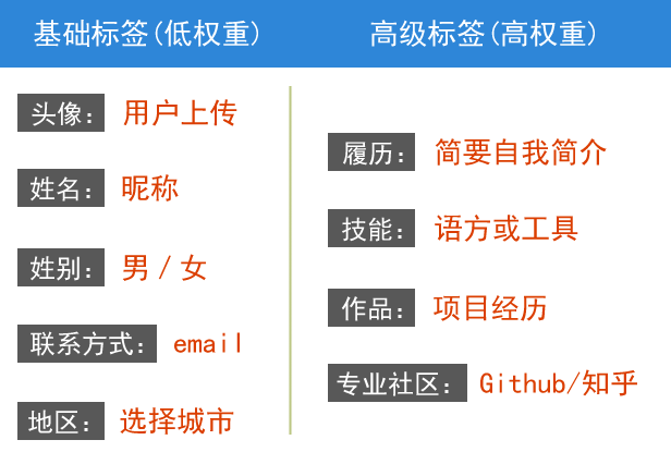 第一,将目标用户标签化,并为各个标签标示权重高低。标签化是为了后期的数据统计分析;标示权重高低则是为了突出某些特定的产品功能和模块,也为了划分用户质量高低,高权重标签对于用户的 Rank 排名有非常大的影响。